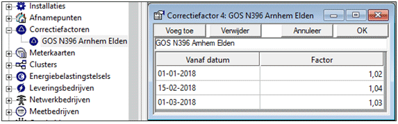 Andere correcties moeten tijdgebonden worden ingevoerd. Dit geldt voor de calorische correctie voor gas, maar ook correcties om de som van submeters op een controleerbare manier gelijk te maken aan de hoofdmeter. Een hoofdmeter zal (vanwege de grootte) een kleiner afwijkingspercentage hebben dan de submeters.
